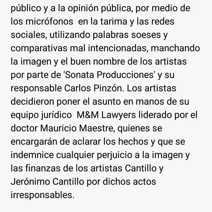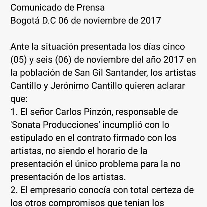 Resulta que ellos estaban contratados para las mismas por cuenta de la empresa Sonata para presentarse a las 2:30 de la mañana ante el público que llenaba el recinto. Desafortunadamente para ellos y el público se fué la luz y regreso tiempo después de la hora señalada para los hermanos Cantillo. Quienes ante otros compromisos adquiridos en Bogotá y Barranquilla, decidieron subirse de nuevo al transporte que los esperaba para regresarlos a la ciudad de origen sin contarle al público en la tarima las razones por las cuales se iban. De acuerdo con sus versiones no encontraron al empresario Carlos Pinzón, para decirle porque se iban quién a su vez aclaro que les habían pagado los honorarios pactados con anterioridad y eran culpables porque incumplieron. Sin embargo los éxitosos hermanos Cantillo aclararon también que en el contrato estaba muy claro escrito que ellos tenían otros compromisos y por eso exigían rigor en el horario de su concierto así que la culpa no la tienen los Cantillo. El imprevisto obvio, jamás se considero. Quién iba a saber que la luz se iría y caería tremendo aguacero que retraso todos los actos. Entonces ¿aquí quien es el culpable? Si es que lo hay.