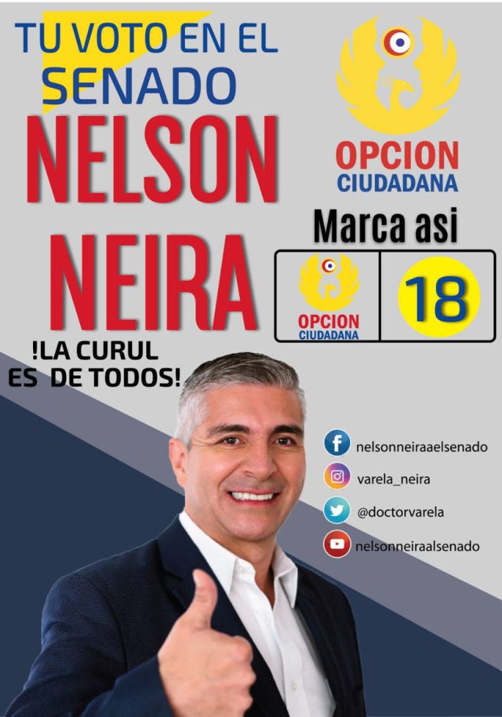 Tal y como lo leen, se nos destapó uno de los humoristas más exitosos en la televisión Colombiana Nelsón Neira, famoso por sus personajes de «Gallo Tapao y Varela el metido e irreverente pero éxitoso periodista del programa de humor de José Ordoñez en años anteriores. Pues bueno, la sorpresa nos la dá ahora Nelsón Neira su intérprete presentándose como candidato al Senado de la República con el número 18 movimiento opción ciudadana, conformado en su gran mayoría por profesionales de la docencia, quienes lo llamaron a unirse al mismo no solo por el humor sino por su carrera profesional como emprendedor, paralela de la del humor. Nelsón Neira se ha caracterizado por ser un gran vendedor de ilusiones y alcanzar sus metas. Porque además es cantante y toda una celebridad en México dónde actualmente tiene un segmento de salud de quince minutos en un programa emitido por Televisa. El está apostando a quedar como uno de los nuevos miembros del Congreso de la República con el número 18 en el tarjetón de su movimiento. ¿Será que los votantes le copian y votan por él? ¿Especialmente las mujeres?, sería todo un bombazo y un triunfo para los humoristas Colombianos. No lo duden. Sólo les falta eso para tener más poder entre sus compatriotas. Cómo dicen por ahí: voten al humor.