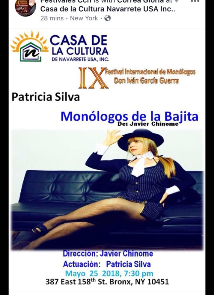 Así calladita, sin mucha bulla la reconocida humorista de «Sábados Felices» Patricia Silva, continúa cosechando éxitos con su monólogo de las bajitas. Patricia que luce espectácular y es una de las más reconocidas del grupo de Caracol T.V., en su especialidad ha sido invitada a participar en «El Festival de Monólogos» en la ciudad de Nueva York, el cual comenzará en próximos días. La Santandereana prepara maletas para viajar a la Gran Manzana y ésta dichosa por la elección. No es para menos se harán presentes las mejores humoristas de América Latina en éste grupo selecto. Quienes creen que ella está pasada de moda no están ni tibios porque sigue más vigente que nunca haciendo reir a los Colombianos y reivindicando principalmente a las mujeres. Buena esa Patricia. Así es que se hace. Que le vaya bien en éste Festival.