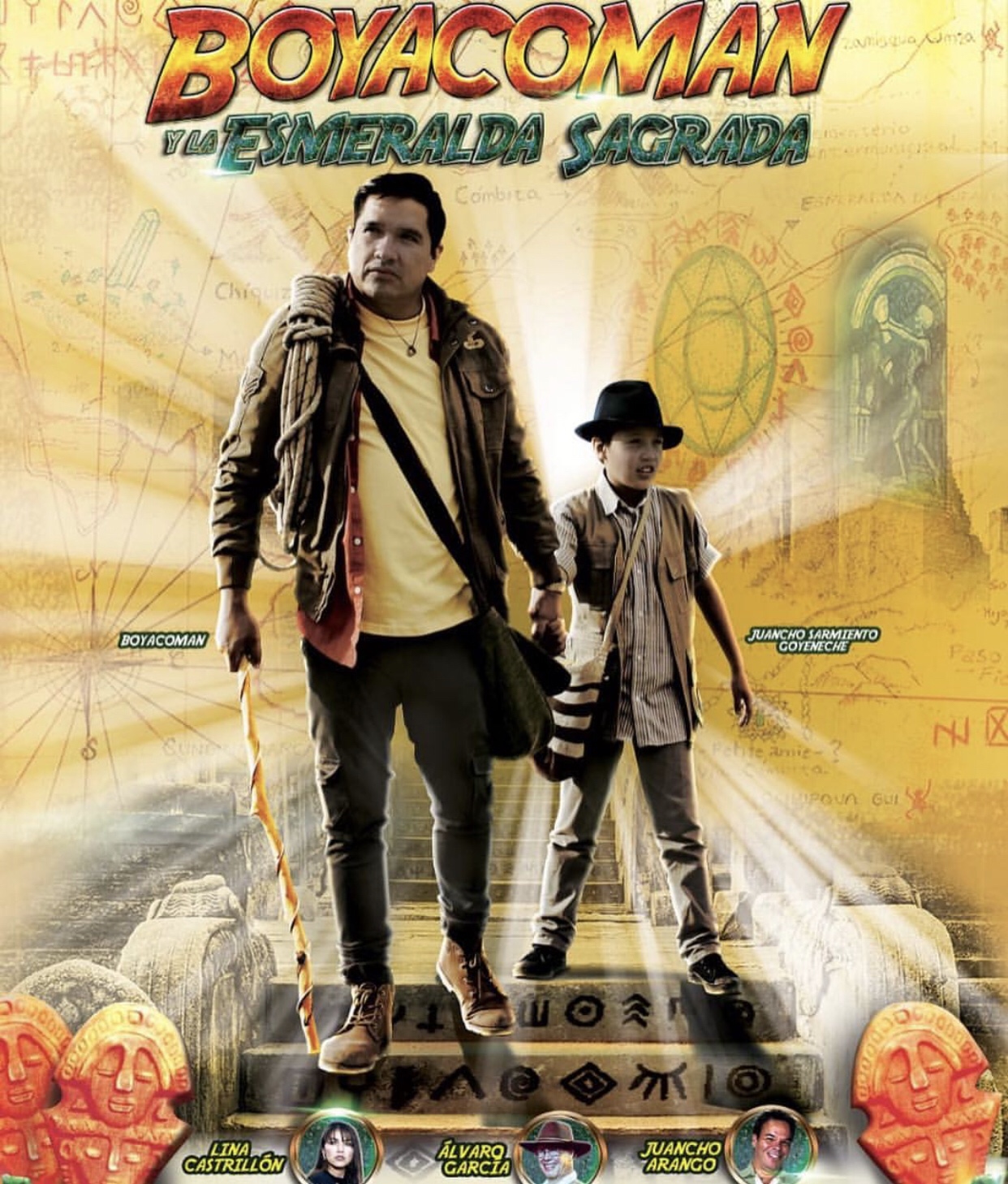 ¿Se imagina a éste hijo de la tierrita Boyacense persiguiendo forajidos. trepando montañas con ese físico que tiene, excavando la tierra, enfrentando peligros para encontrar una esmeralda dizque «sagrada», dice él y devolverla a sus legítimos dueños? Pues si señores por arte de birli birloque nuestro héroe del humor de Sábados Felices, Boyacomán deja en pañales al mísmisimo Indiana Jones, en la película que se estrena el próximo 21 de marzo en todas las salas de cine del país «Boyacamán y la esmeralda sagrada», una historia épica de aventuras de la lucha del bien contra el mal dónde sólo habrá un vencedor. ¿Y quién creen que es?. Para morirse de la risa. Recomendadísima. ¡No se la pierda! Ayuden con el valor de su boletica a nuestro rudimentario héroe. ¡Se lo merece!.