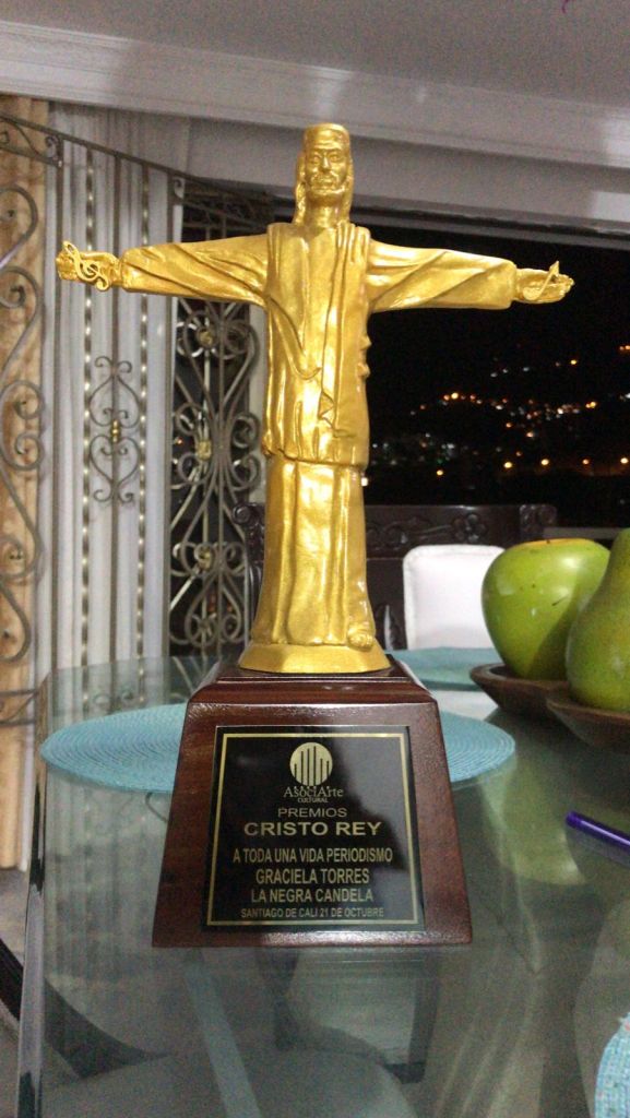 «Asociartes» organización sin ánimo de lucro con sede en la capital del Valle del Cauca, Cali que busca incentivar la cultura, las artes, el entretenimiento realizo el pasado 21 de octubre la ceremonia de entrega de los Premios «Cristo rey» en varias categorias como «La voz revelación femenina»; «La voz revelación masculina», «La mejor orquesta tropical o crossover», «El mejor productor músical» entre otros se ha ganado los aplausos del mundo del entretenimiento porque no solamente reconoce mérito sino igual se preocupa por la capacitación, actualización y crecimiento de sus afiliados, mediante seminarios, talleres de conocimientos que los hagan competitivos frente a los grandes retos que el siglo XXI, en diferentes campos, especialmente el tecnológico hacen indispensables para estar a tono con la actualidad. La ceremonia realizada en el teatro Jorge Isaacs fué absolutamente éxitosa, con la asistencia de destacadas figuras del mundo cultural Vallecaucano y personalidades de la ciudad. Conducida entre otros por el éxitoso periodista Héctor Gómez, director de «Gato noticias Bogotá». Justamente estos premios son un incentivo para quienes estamos en la brega periodística que tantas alegrias, como sinsabores nos traen diariamente. Quiero agradecer a «Asociarte» el galardón que me fué otorgado a «Toda una vida en el cubrimiento de noticias del entretenimiento». Emocionante reconocimiento de la organización del Valle del Cauca a una hija adoptiva. ¡Muchas pero muchas gracias!