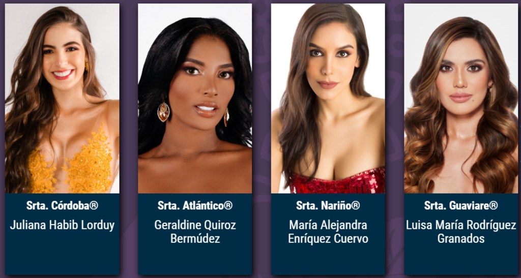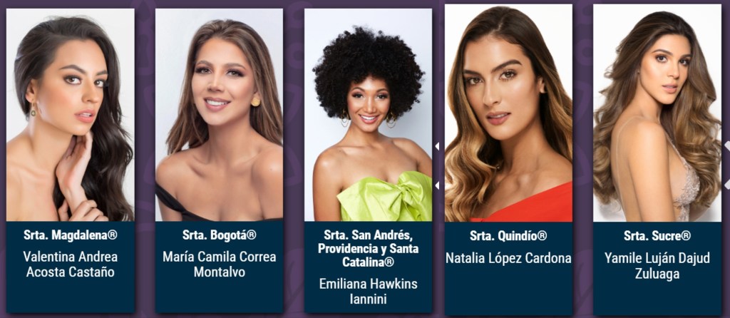 Noviembre en Colombia es el mes de las reinas. Marca el cierre del año porque despues de la elección y coronación de la nueva Señorita Colombia, llega diciembre y todo es fiesta, alegria, navidades. Y, aunque la soberana de éste certamen dejo de elegirse un años por aquello de la pandemia, ahora cuando comenzó la reactivación de los eventos masivos, la junta directiva del concurso tradicional de belleza del país decidió volver por sus fueros con su evento y la verdad con buen pronóstico. Veintitrés candidatas de diferentes regiones de Colombia a través de los respectivos Comités de Belleza se encargaron de buscar y postular a sus representantes ante la junta directiva del exigente concurso. Las niñas de acuerdo con su registro fotográfico son altamente competitivas por su atractivo físico, rostros hermosos y preparación académica excelente. De cuerpos no se puede decir absolutamente nada hasta no verlas en el desfile en traje de baño, que hasta el momento seguirá en su sede natural el Hotel Hilton. Del resto de los actos tradicionales como el desfile de carrozas no hay confirmación, porque el Reinado Popular tampoco se ha pronunciado y sabemos que las candidatas nacionales usufructan algunas de las utilizadas por las reinas de los barrios que compiten por el titulo de soberana de las fiestas novembrinas. Cerradas las inscripciones éstas son las veintitres bellas participantes en Miss Colombia: