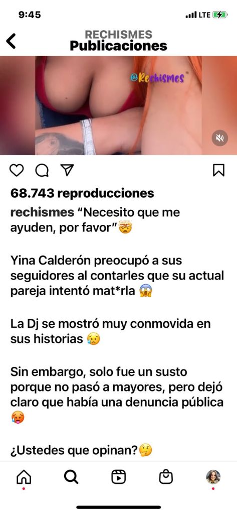 No es ningún chiste, menos una broma. Subir a sus redes mensajes tan alarmantes como “ y “Necesito que me ayuden por favor“ y “que su actual pareja intento matarla“ y después Tranquilamente “Solo fue un susto porque no paso a mayores, pero que hay una denuncia pública“. Gina Calderón la comerciante de fajas es la responsable de éstas denuncias inquietantes y preocupantes para cualquier ser humano, especialmente si es mujer en un país donde por la más mínima cosa son atacadas y en muchas ocasiones de manera mortal. Las consecuencias son imprevisibles. Y si no es cierto sólo por conseguir seguidores llamando la atención de ésta manera: muchísimo peor. Porque quién quedó en el ojo del huracán es el “supuesto victimario“ pareja actual de Gina! responsable de la acción denunciada por ella en sus redes. Le puso el blanco en la espalda para cualquier acción punitiva en apoyo de Calderón. Quién está denunciando casi nada : “un intento de feminicidio, de asesinato“ Muchos de los llamados “influenciadores“ manejan las peligrosas redes sociales de manera irresponsable sin tener en cuenta a los seguidores ni a sus emociones que pueden reaccionar de cualquier manera impredecible. Y es lo hecho por Gina Calderón en esta ocasión hablando de algo que al parecer no fue como lo presentó pero si magnificó con las palabras escritas. Ya se pronunció la Fiscalía, las autoridades, ¿el acusado?. A esto hay que hacerle seguimiento para evitar acciones mayores y lamentables. Todo por unos likes. ¡NO hay derecho!. Que hable el señalado. ¿O, fué producto de que? ¿Del delirio de la chica? o de una de sus “putifiestas?