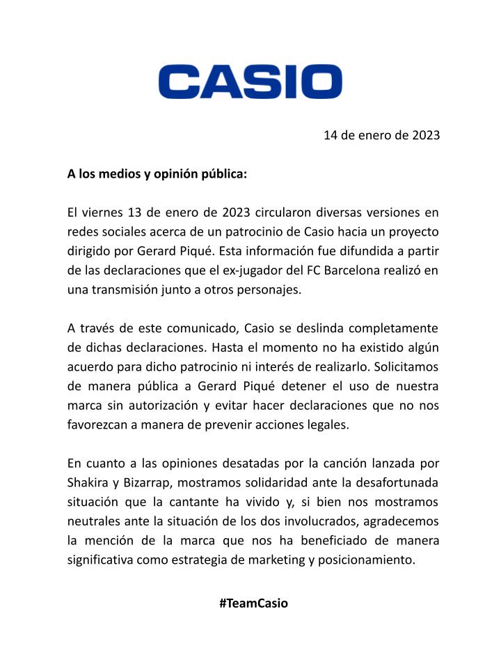 Se le está creciendo la nariz a Gerard Pique, de hecho ya la tiene banstante prominente, ahora se ayuda con sus afirmaciones de los “supuestos” acuerdos con Cassio y Twingo para patrocinar su Kings League la última de sus propuestas en la plataforma Twich Después de jactarse de eso, la multinacional ha respondido con un comunicado oficial en el cual desmiente rotundamente el acuerdo, nunca han hablado de esto y advierte medidas legales de seguir asegurando cosas inexistentes. Bobos no son. Shakira hará gira mundial con su música y al lado de quien creen que se alineará el público? Cassio ha manifestado su solidaridad con la cantante pero de manera neutral. Lo evidente de esta situación es la dependencia en el aspecto comercial de su ex-pareja porque no tiene la fuerza por si solo de tener patrocinadores tan importantes cómo estás dos multinacionales.